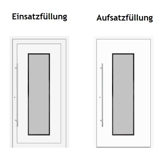 Die Aufsatzfüllung (auch flügelüberdeckend) liegt auf dem Flügelrahmen auf, verdeckt ihn komplett (einseitig außen oder beidseitig) und sorgt für eine moderne, glatte und flächenbündige Optik mit noch besserer Dämmung.